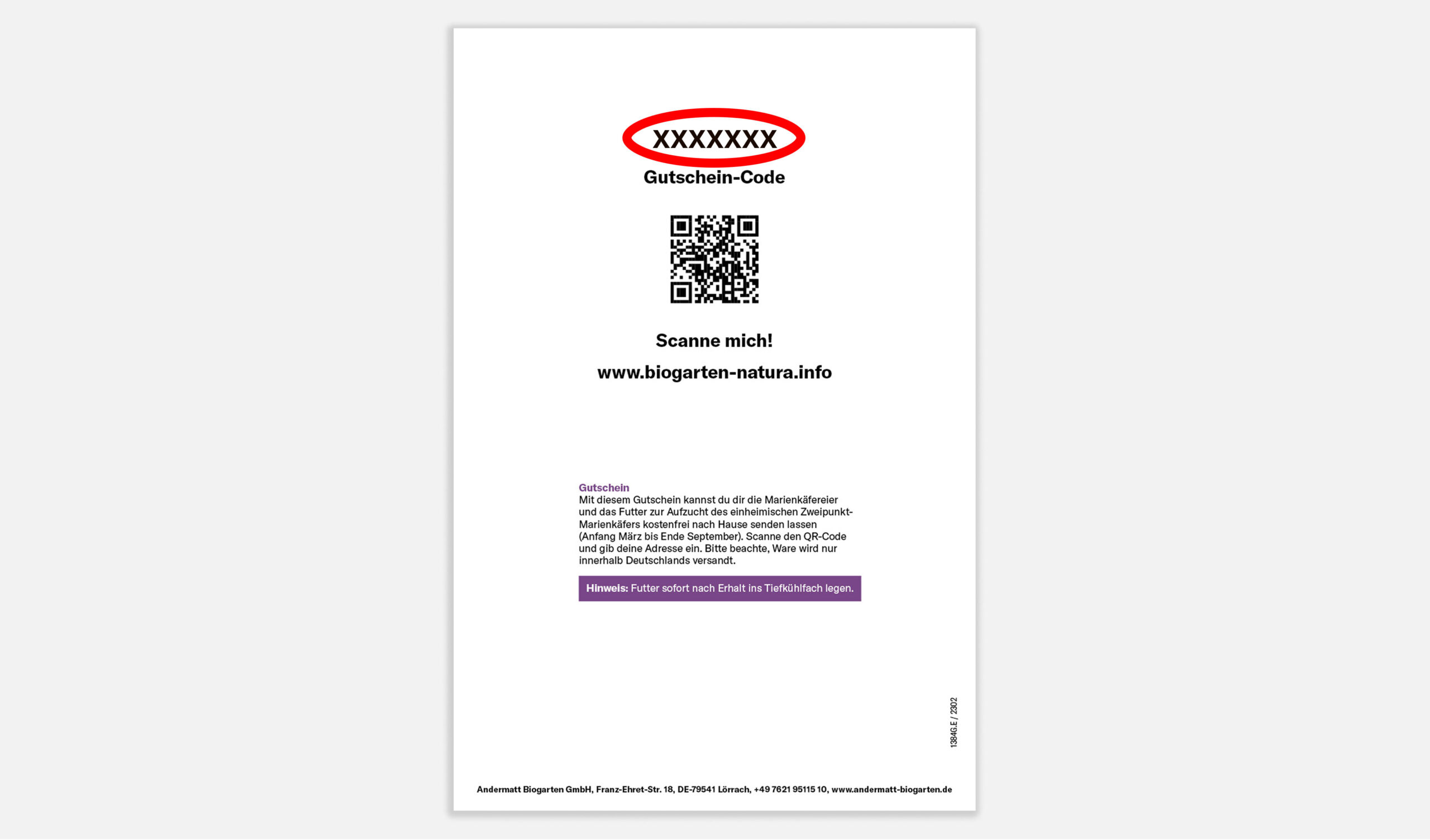 Deine Aufzucht kann startenBitte aktiviere JavaScript in deinem Browser, um dieses Formular fertigzustellen.1Code eingeben2Lieferadresse3LieferterminGutscheincode *Land *SchweizDeutschlandLiechtensteinÖsterreichAufzuchtset *Marienkäfer-EierSchmetterlingsraupenPilz-StartkulturAufzuchtset *Marienkäfer-EierPilz-StartkulturDen Code findest du oben auf der Rückseite deines Gutscheins. WeiterBitte erfasse deine vollständige Lieferadresse: Kontakt Aufzuchtset E-Mail Lieferadresse * Privatadresse Geschäftsadresse Firma / Schule / Kindergarten *Anrede *HerrFrauFamilieKeine AnredeDein Name *VornameNachnameAnschrift *Adresse Zeile 1Anschrift ZusatzOrtRegionPostleitzahlE-Mail *TelefonZurückWeiterLieferterminWenn du bei der Einlösung einen Wunschliefertermin angibst, kannst du dein Abenteuer Aufzucht zu einem späteren Zeitpunkt starten.WunschlieferterminLieferbar auf Di, Mi, Do, Fr und Sa. WunschlieferterminVorlaufzeit mind. 2 Wochen. Lieferung möglich auf Do und Fr. Marienkäfereier versenden wir von März bis September. Damit du deine Schützlinge nach der Aufzucht sicher in die Freiheit entlassen kannst, verschicken wir über den Winter keine Eier. Bestellungen, welche ausserhalb dieser Monate liegen, werden automatisch auf den nächsten möglichen Anwendungszeitraum terminiert. Bitte nimm die Marienkäfereier am Tag der Anlieferung so schnell wie möglich ins Haus. Nicht, dass die Aufzucht im Briefkasten startet oder die Tiere bei zu hohen oder tiefen Temperaturen Schaden nehmen. Das Futter für die Marienkäfer bitte direkt in den Tiefkühler legen. WunschlieferterminLieferbar auf Di, Mi, Do, Fr und Sa. Schmetterlingsraupen versenden wir von April bis Mitte September. Damit du deine Schützlinge nach der Aufzucht sicher in die Freiheit entlassen kannst, verschicken wir über den Winter keine Eier. Bestellungen, welche ausserhalb dieser Monate liegen, werden automatisch auf den nächsten möglichen Anwendungszeitraum terminiert. Bitte nimm die Schmetterlingsraupen am Tag der Anlieferung so schnell wie möglich ins Haus. Nicht, dass die Aufzucht im Briefkasten startet oder die Tiere bei zu hohen oder tiefen Temperaturen Schaden nehmen. WunschlieferterminLieferbar auf Di, Mi, Do, Fr und Sa. WunschlieferterminVorlaufzeit mind. 2 Wochen. Lieferung möglich auf Do und Fr. Pilz-Startkultur versenden wir von September bis Mai. Damit du deine Schützlinge nach der Aufzucht sicher in die Freiheit entlassen kannst, verschicken wir über den Winter keine Eier. Bestellungen, welche ausserhalb dieser Monate liegen, werden automatisch auf den nächsten möglichen Anwendungszeitraum terminiert. Bitte nimm die Pilz-Startkultur am Tag der Anlieferung so schnell wie möglich ins Haus. Nicht, dass die Aufzucht im Briefkasten startet oder die Pilze bei zu hohen oder tiefen Temperaturen Schaden nehmen. BemerkungAGB-Einverständnis *Ich habe die AGB gelesen und bestätige hiermit, dass ich damit einverstanden bin.AGB-Einverständnis *Ich habe die AGB gelesen und bestätige hiermit, dass ich damit einverstanden bin.ZurückGutschein einlösen